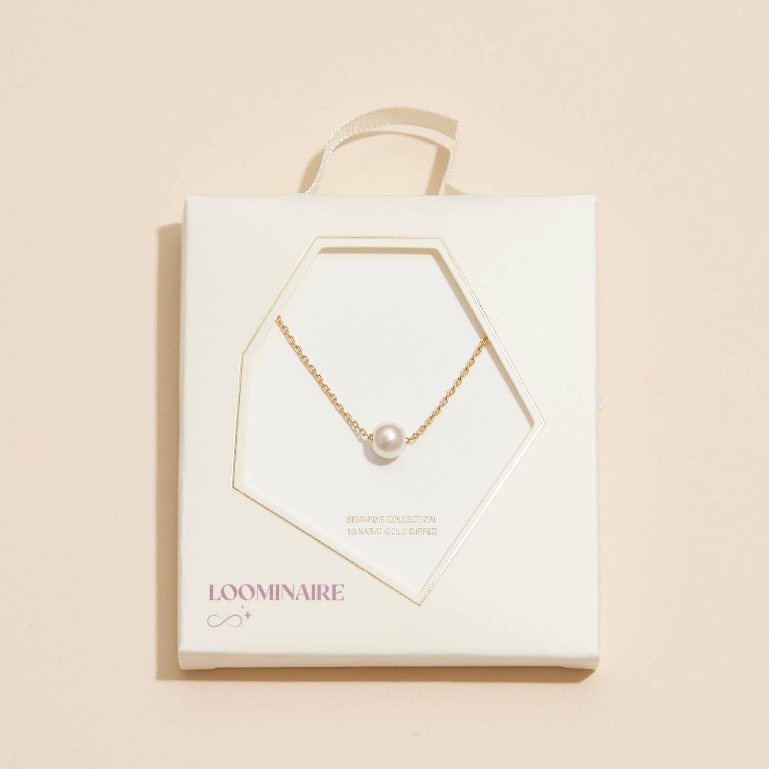6mm Classic Pearl Charm 18K Gold Dip Necklace
