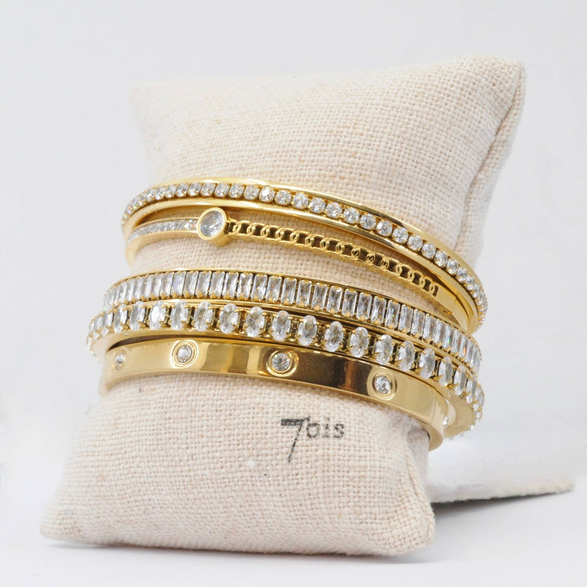 Set of 5 bracelets on linen display