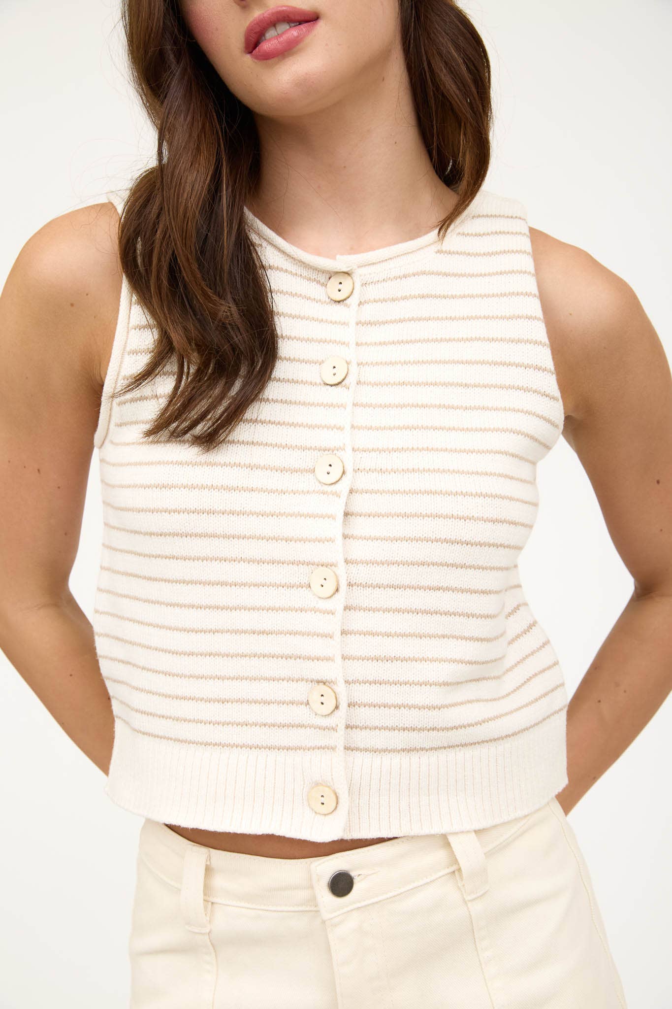 STRIPE RAW EDGE BUTTON DOWN CARDIGAN VEST